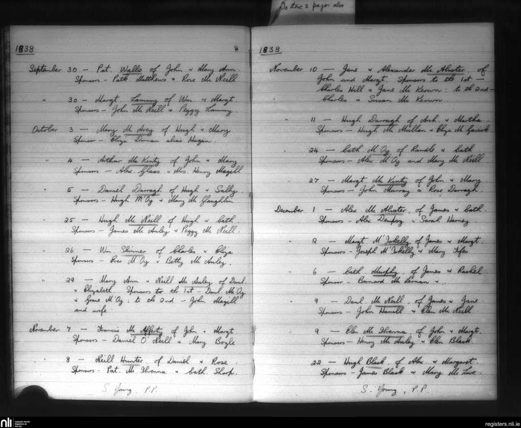 Glenarm; County of Antrim; Diocese of Down and Connor. Baptisms, Sep. 1838 to Dec. 1838