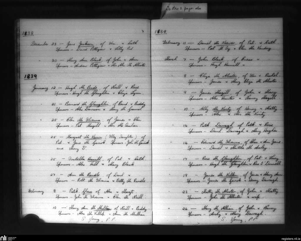 Glenarm; County of Antrim; Diocese of Down and Connor. Baptisms, Dec. 1838 to Mar. 1839