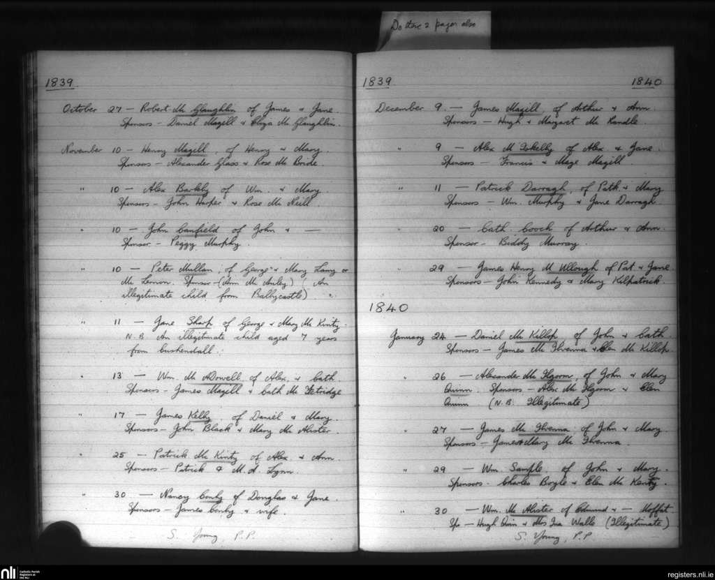Glenarm; County of Antrim; Diocese of Down and Connor. Baptisms, Oct. 1839 to Jan. 1840