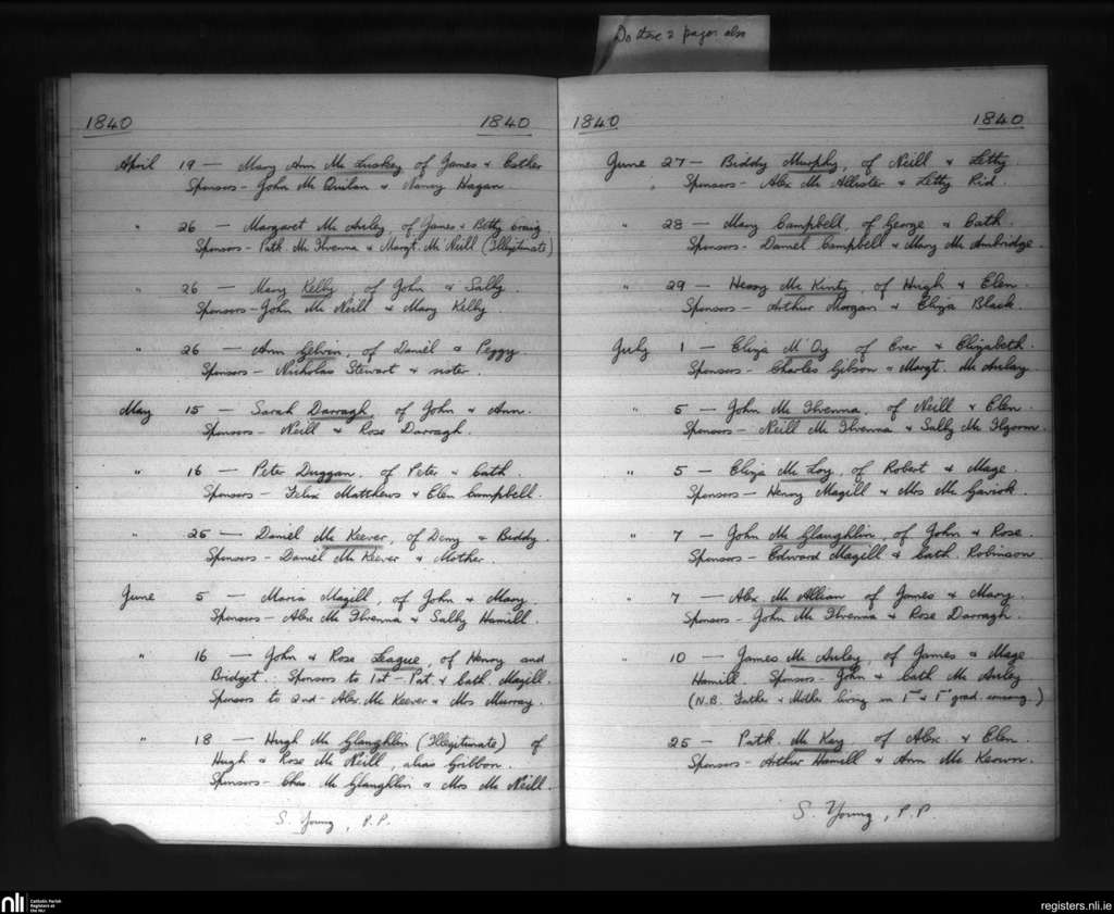 Glenarm; County of Antrim; Diocese of Down and Connor. Baptisms, Apr. 1840 to July 1840