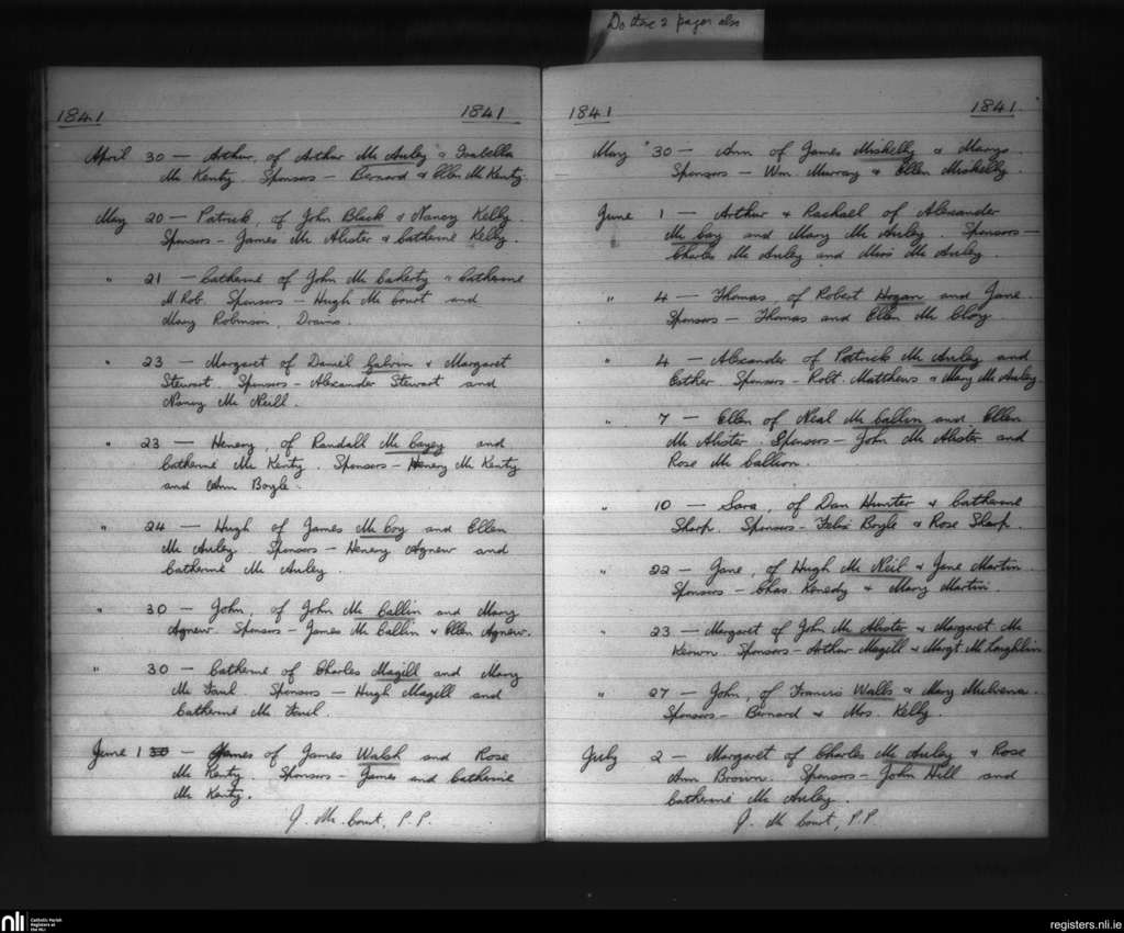 Glenarm; County of Antrim; Diocese of Down and Connor. Baptisms, Apr. 1841 to July 1841