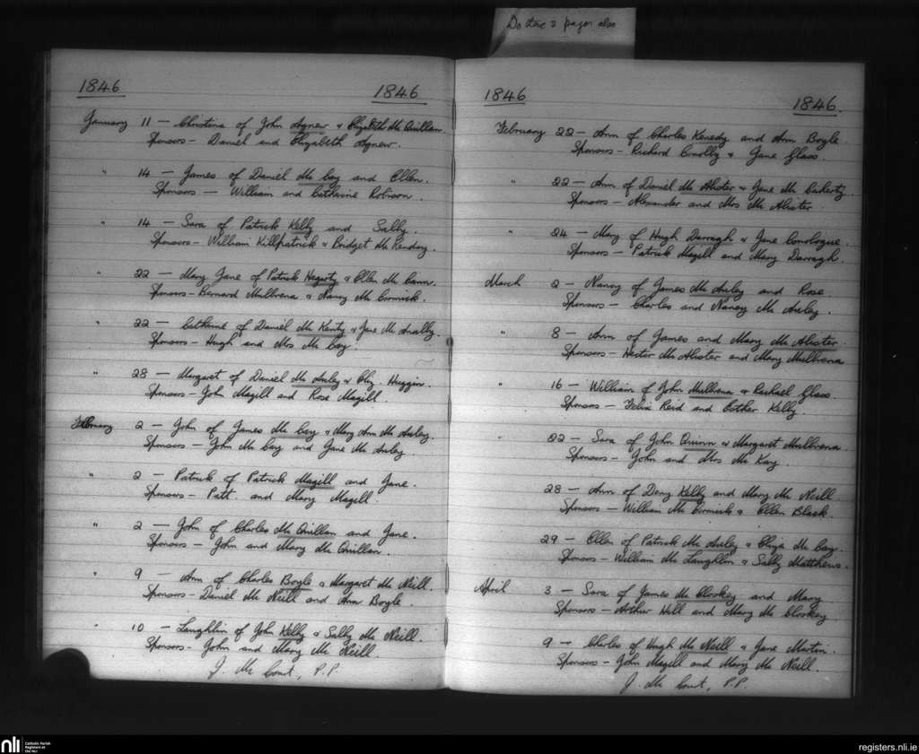 Glenarm; County of Antrim; Diocese of Down and Connor. Baptisms, Jan. 1846 to Apr. 1846