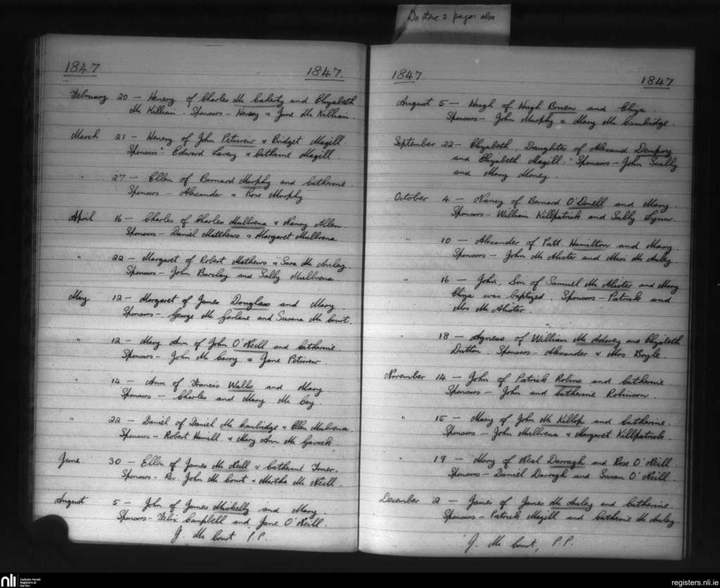 Glenarm; County of Antrim; Diocese of Down and Connor. Baptisms, Feb. 1847 to Dec. 1847