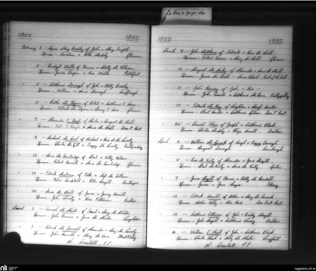 Glenarm; County of Antrim; Diocese of Down and Connor. Baptisms, Feb. 1850 to Apr. 1850