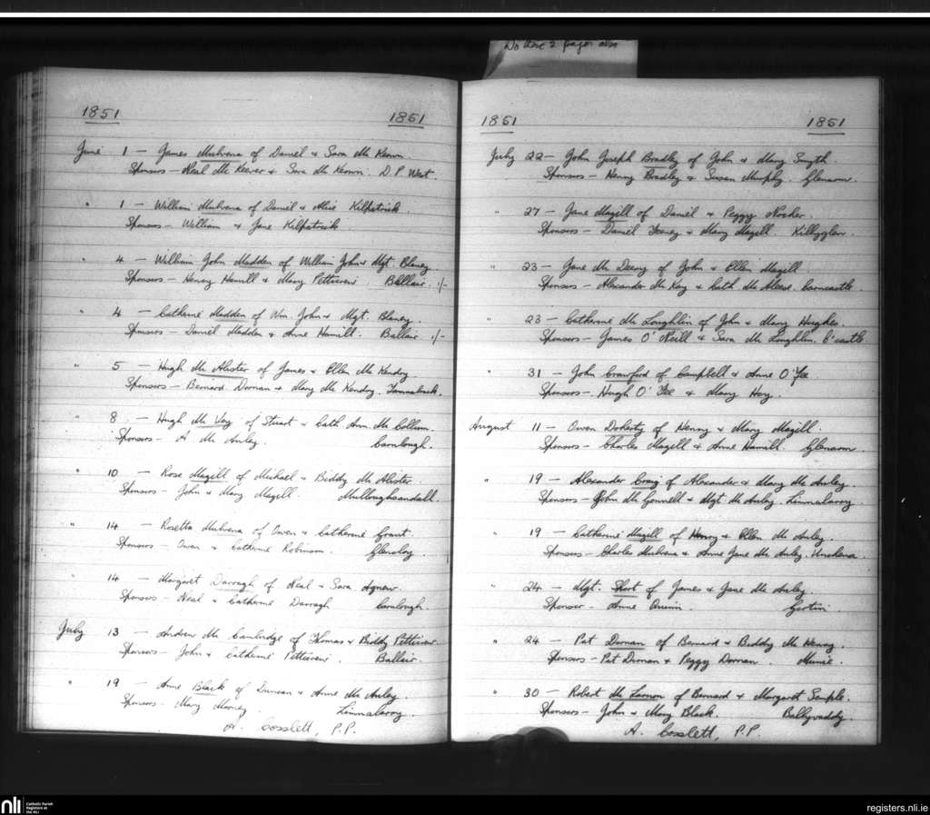 Glenarm; County of Antrim; Diocese of Down and Connor. Baptisms, June 1851 to Aug. 1851