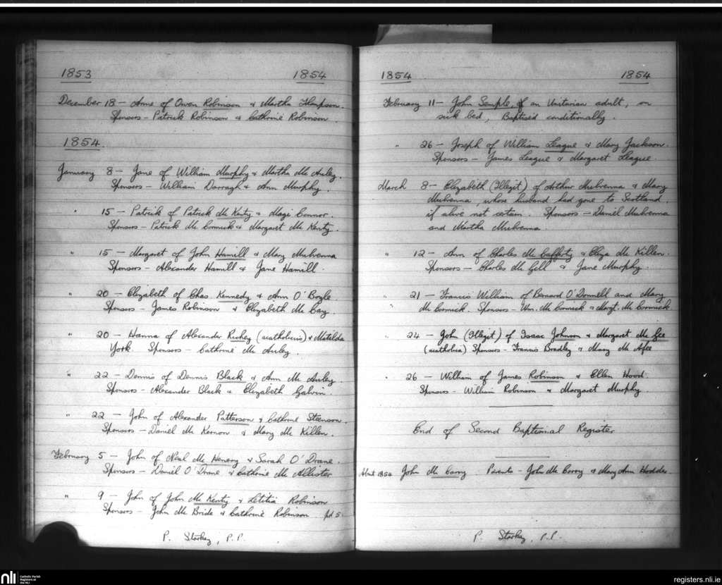 Glenarm; County of Antrim; Diocese of Down and Connor. Baptisms, Dec. 1853 to Mar. 1854