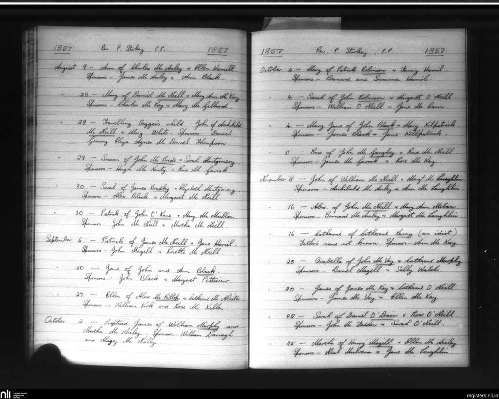 Glenarm; County of Antrim; Diocese of Down and Connor. Baptisms, Aug. 1857 to Nov. 1857