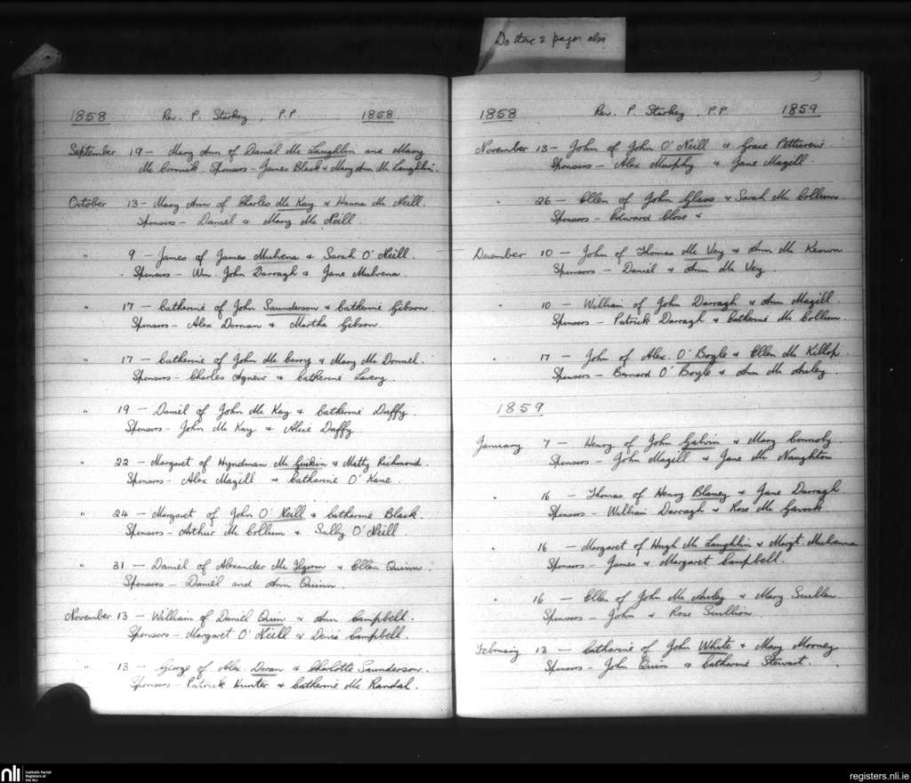 Glenarm; County of Antrim; Diocese of Down and Connor. Baptisms, Sep. 1858 to Feb. 1859