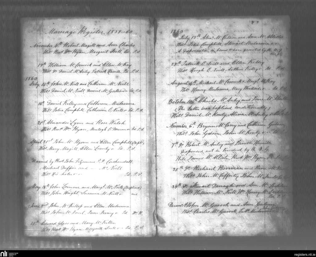 Glenarm; County of Antrim; Diocese of Down and Connor. Marriages, Nov. 1859 to Dec. 1860