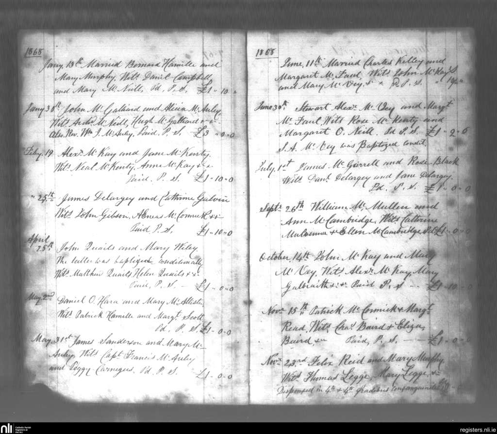 Glenarm; County of Antrim; Diocese of Down and Connor. Marriages, Jan. 1868 to Nov. 1868