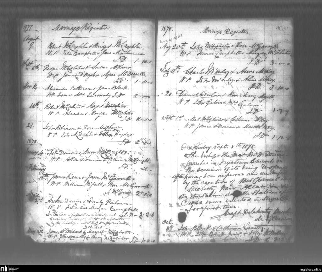 Glenarm; County of Antrim; Diocese of Down and Connor. Marriages, Aug. 1877 to Oct. 1878