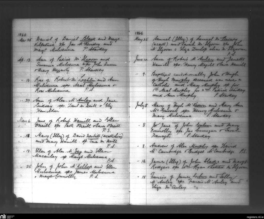 Glenarm; County of Antrim; Diocese of Down and Connor. Baptisms, Mar. 1866 to July 1866