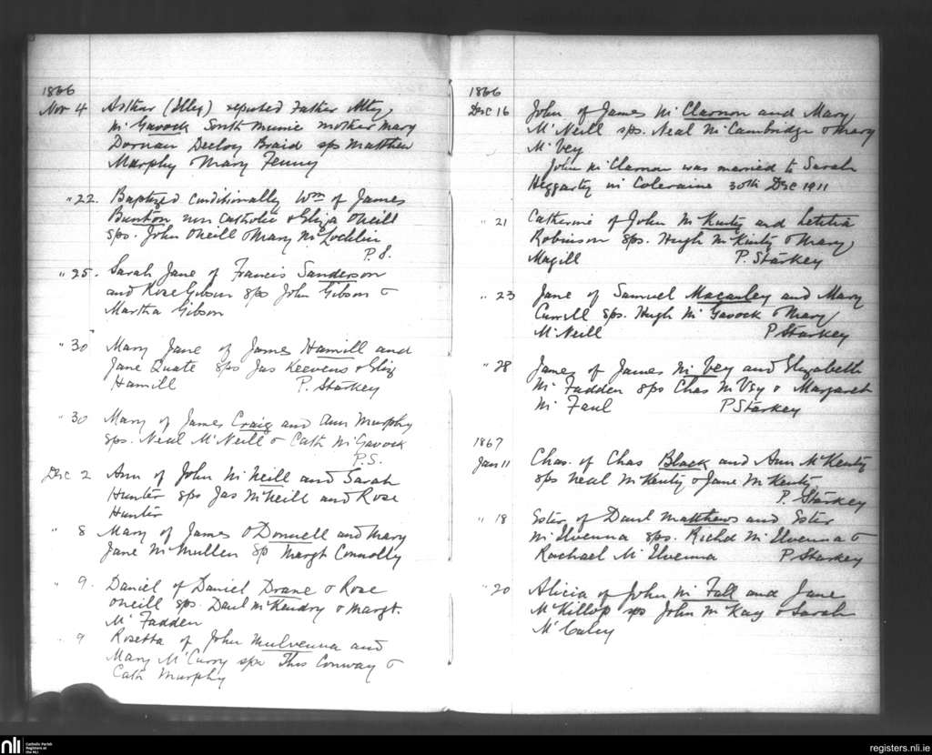 Glenarm; County of Antrim; Diocese of Down and Connor. Baptisms, Nov. 1866 to Jan. 1867