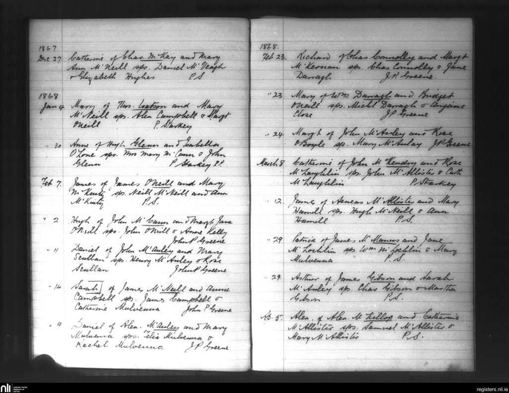 Glenarm; County of Antrim; Diocese of Down and Connor. Baptisms, Dec. 1867 to Apr. 1868