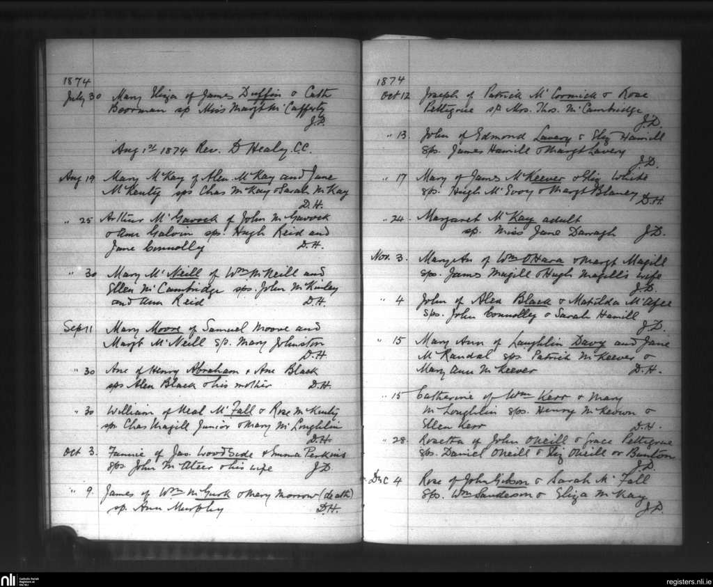 Glenarm; County of Antrim; Diocese of Down and Connor. Baptisms, July 1874 to Dec. 1874