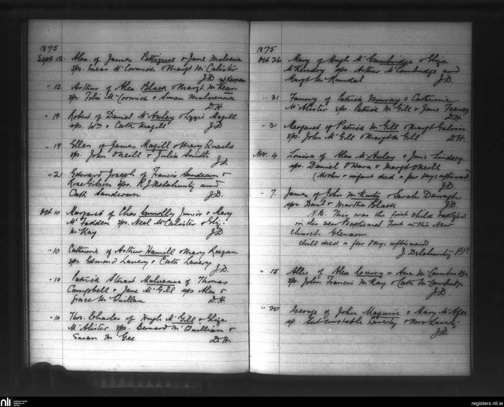 Glenarm; County of Antrim; Diocese of Down and Connor. Baptisms, Sep. 1875 to Nov. 1875