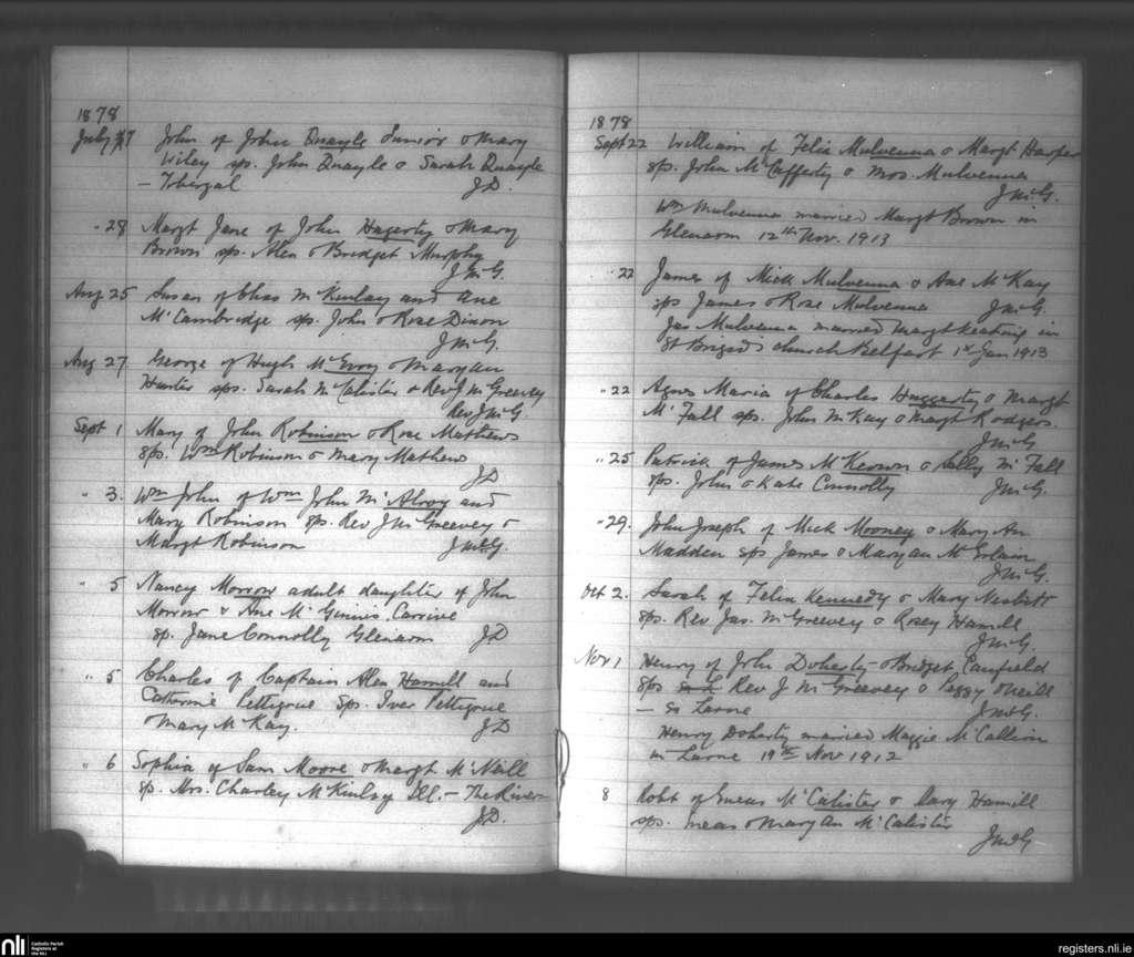 Glenarm; County of Antrim; Diocese of Down and Connor. Baptisms, July 1878 to Nov. 1878