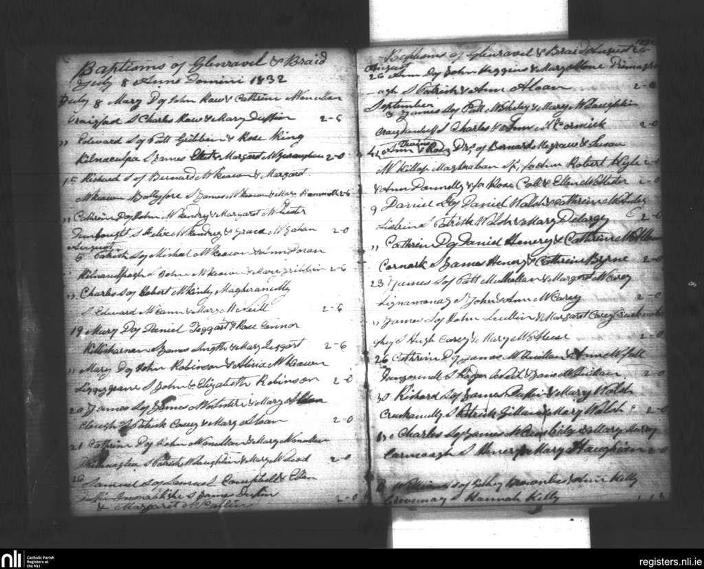 Glenravel; County of Antrim; Diocese of Down and Connor. Baptisms, July 1832 to Aug. 1832