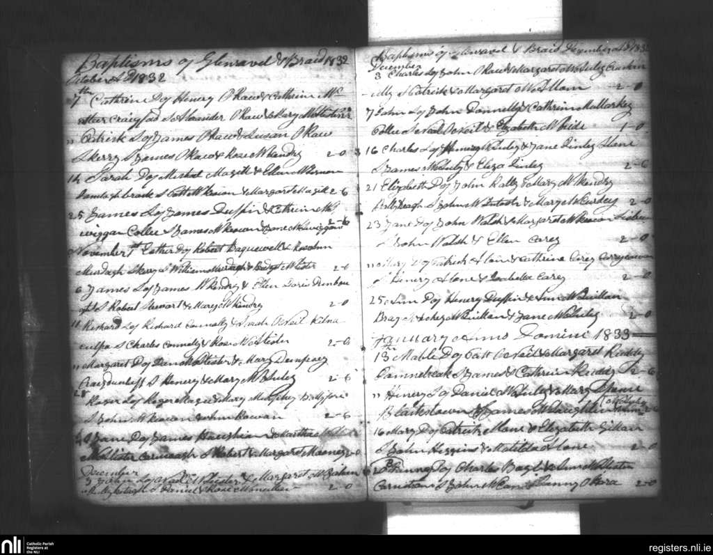Glenravel; County of Antrim; Diocese of Down and Connor. Baptisms, Oct. 1832 to Jan. 1833