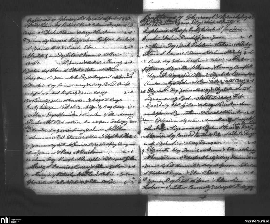 Glenravel; County of Antrim; Diocese of Down and Connor. Baptisms, Apr. 1833 to June 1833