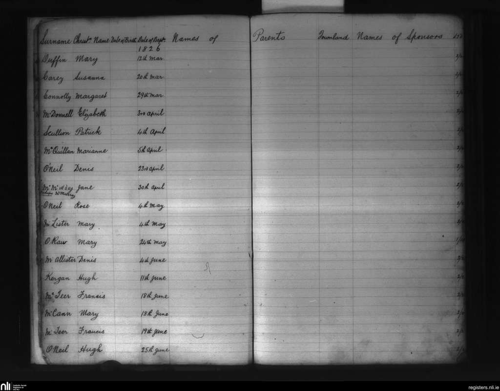 Glenravel; County of Antrim; Diocese of Down and Connor. Baptisms, Mar. 1826 to June 1826