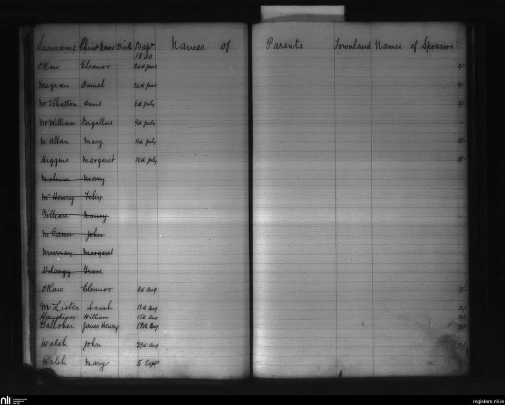 Glenravel; County of Antrim; Diocese of Down and Connor. Baptisms, June 1830 to Sep. 1830