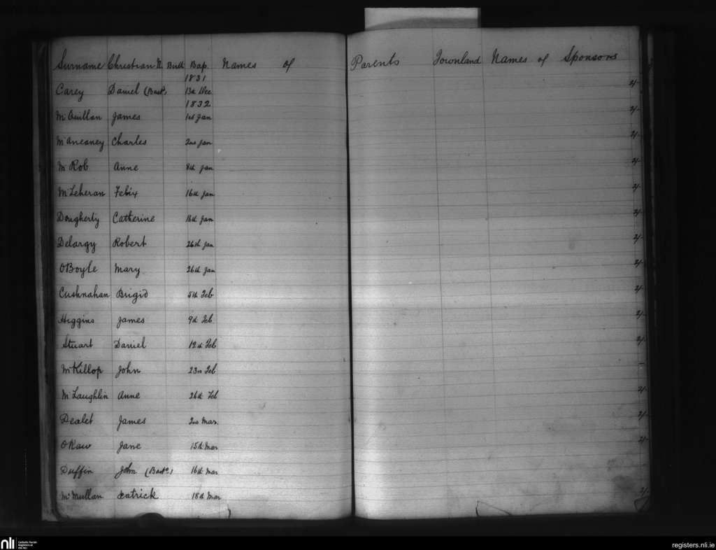 Glenravel; County of Antrim; Diocese of Down and Connor. Baptisms, Dec. 1831 to Mar. 1832