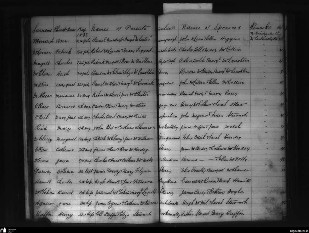 Glenravel; County of Antrim; Diocese of Down and Connor. Baptisms, July 1833 to Sep. 1833