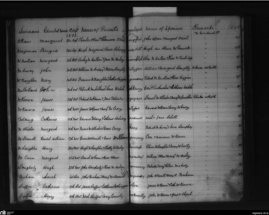 Glenravel; County of Antrim; Diocese of Down and Connor. Baptisms, Sep. 1833 to Dec. 1833