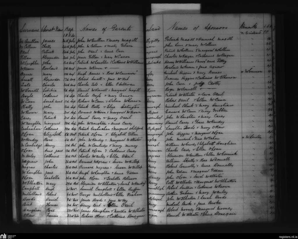 Glenravel; County of Antrim; Diocese of Down and Connor. Baptisms, July 1834 to Nov. 1834