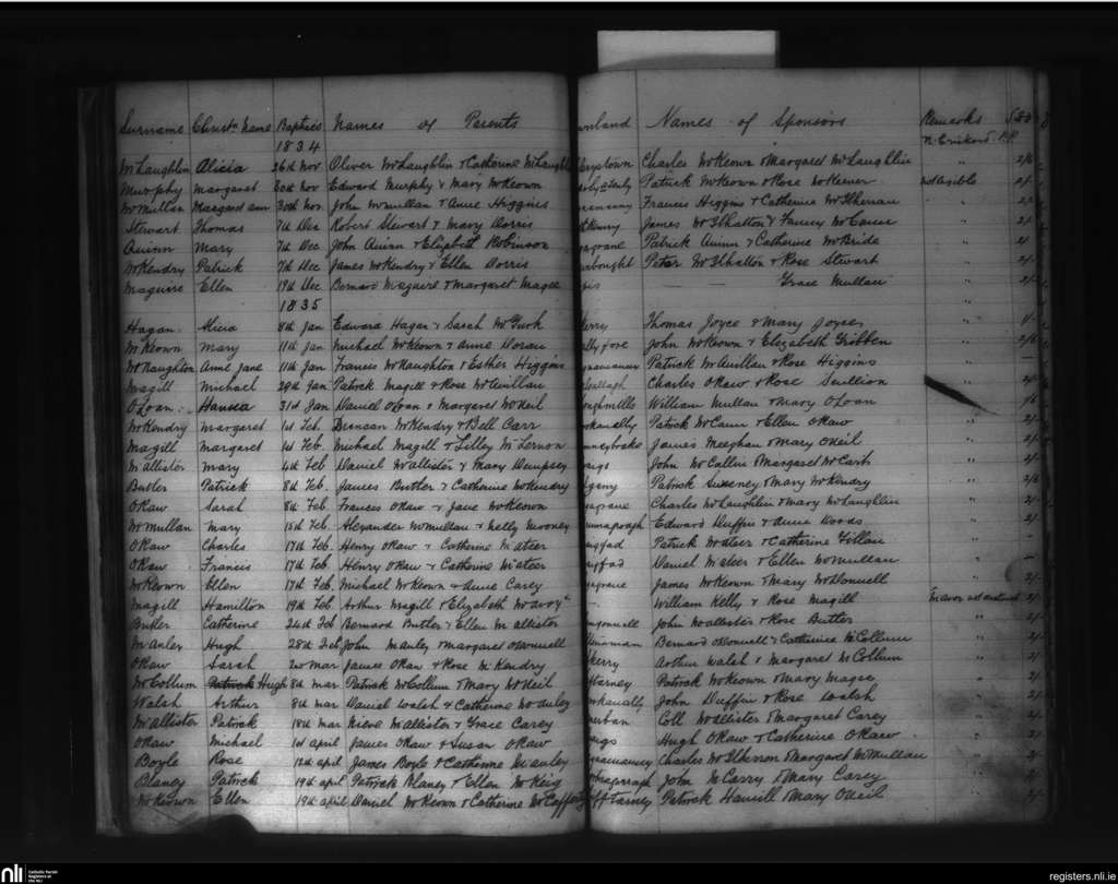 Glenravel; County of Antrim; Diocese of Down and Connor. Baptisms, Nov. 1834 to Apr. 1835