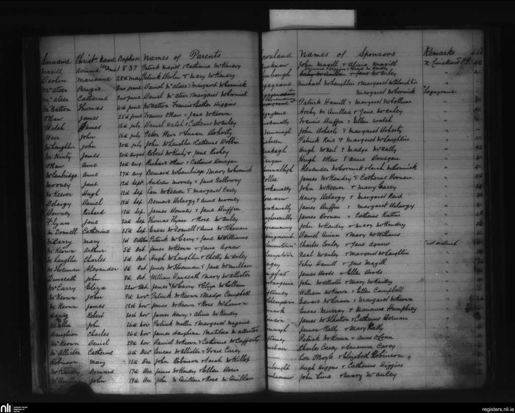 Glenravel; County of Antrim; Diocese of Down and Connor. Baptisms, May 1837 to Dec. 1837