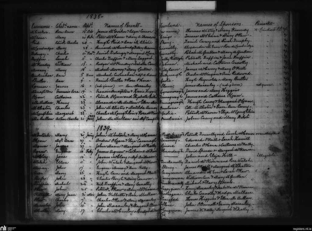 Glenravel; County of Antrim; Diocese of Down and Connor. Baptisms, Oct. 1838 to Mar. 1839