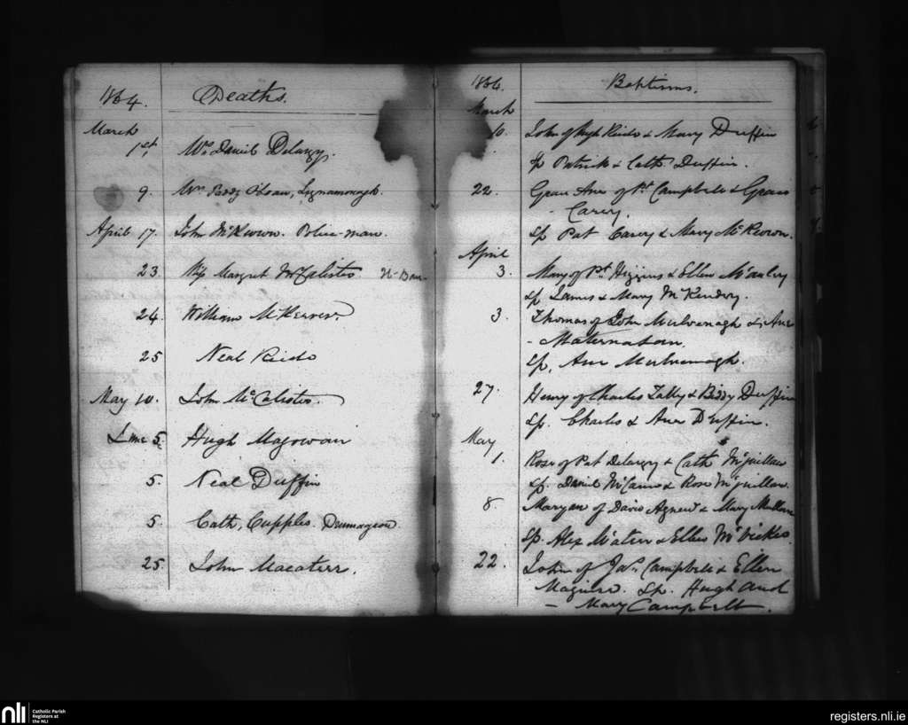 Glenravel; County of Antrim; Diocese of Down and Connor. Deaths, Baptisms, Mar. 1864 to May 1864