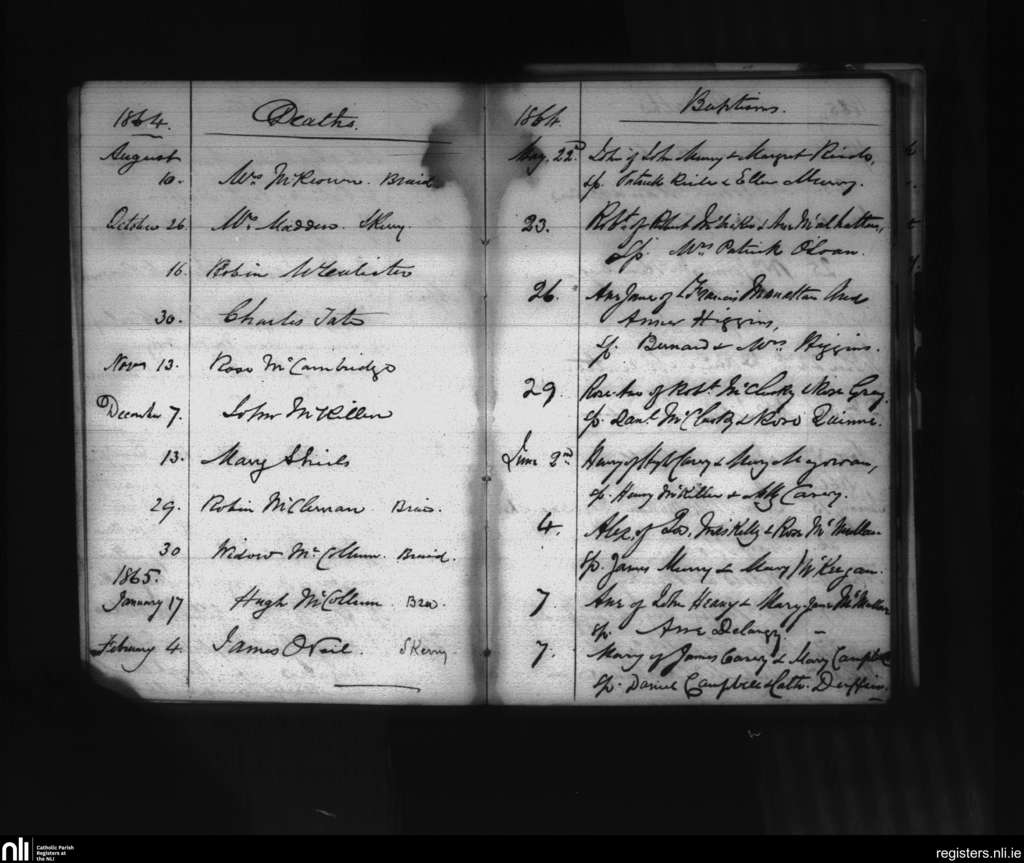 Glenravel; County of Antrim; Diocese of Down and Connor. Deaths, Baptisms, May 1864 to Feb. 1865