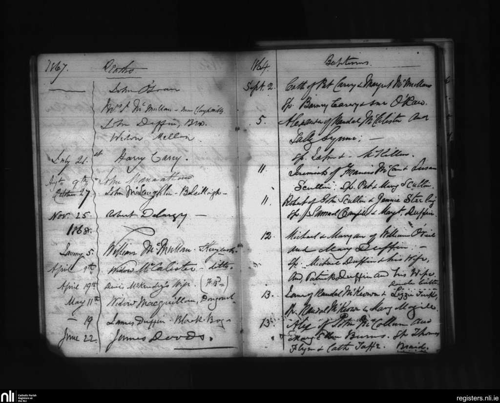 Glenravel; County of Antrim; Diocese of Down and Connor. Deaths, Baptisms, July 1867 to Sep. 1868