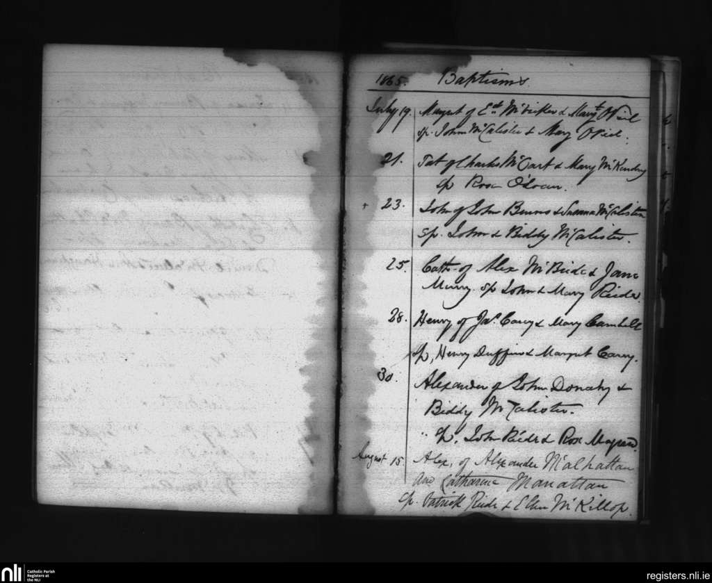 Glenravel; County of Antrim; Diocese of Down and Connor. Baptisms, July 1865 to Aug. 1865