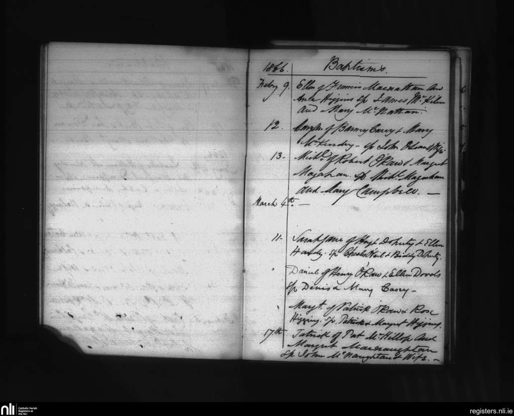Glenravel; County of Antrim; Diocese of Down and Connor. Baptisms, Feb. 1866 to Mar. 1866