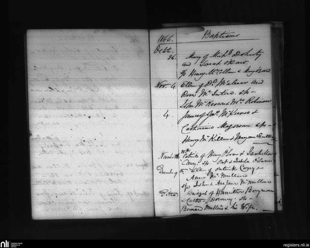 Glenravel; County of Antrim; Diocese of Down and Connor. Baptisms, Oct. 1866 to Dec. 1866