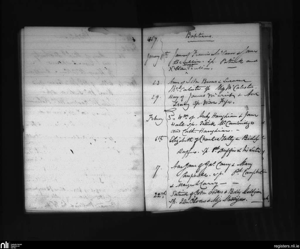 Glenravel; County of Antrim; Diocese of Down and Connor. Baptisms, Jan. 1867 to Feb. 1867
