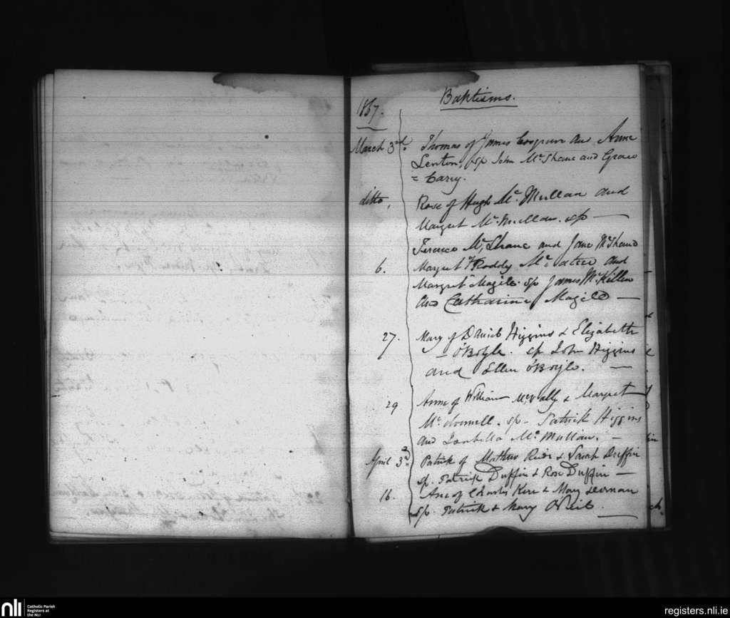Glenravel; County of Antrim; Diocese of Down and Connor. Baptisms, Mar. 1867 to Apr. 1867