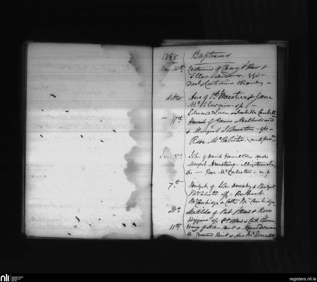 Glenravel; County of Antrim; Diocese of Down and Connor. Baptisms, May 1868 to June 1868