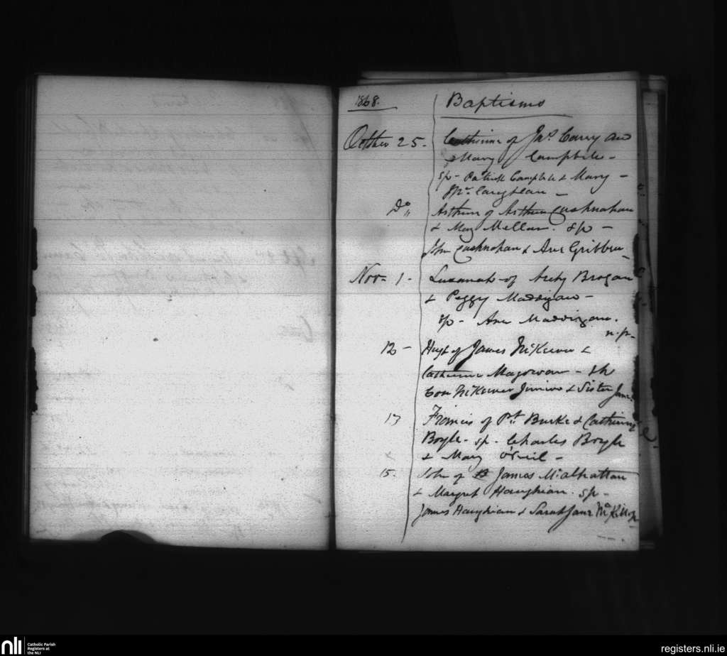 Glenravel; County of Antrim; Diocese of Down and Connor. Baptisms, Oct. 1868 to Nov. 1868