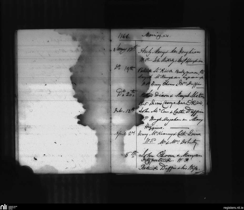 Glenravel; County of Antrim; Diocese of Down and Connor. Marriages, Jan. 1866 to Apr. 1866