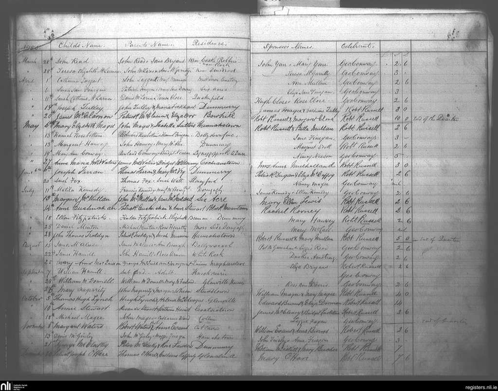 Hannastown, Rock and Derriaghy; County of Antrim; Diocese of Down and Connor. Baptisms