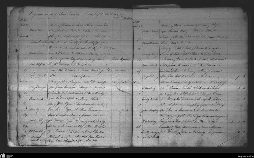 St. Patrick's, Cork city; County of Cork; Diocese of Cork and Ross. Baptisms, Oct. 1836 to Feb. 1837