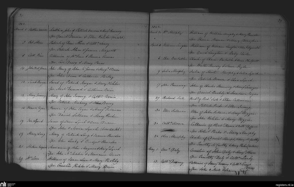 St. Patrick's, Cork city; County of Cork; Diocese of Cork and Ross. Baptisms, Mar. 1842 to May 1842