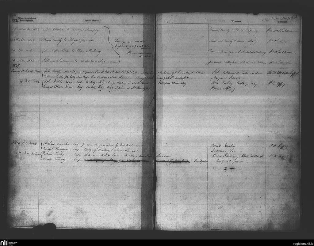 St. Patrick's, Cork city; County of Cork; Diocese of Cork and Ross. Marriages, Nov. 1836 to Feb. 1837