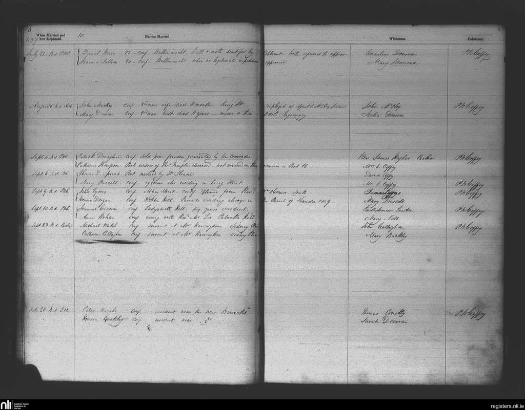 St. Patrick's, Cork city; County of Cork; Diocese of Cork and Ross. Marriages, July 1837 to Oct. 1837