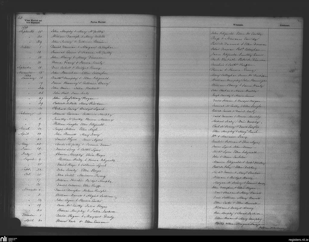 St. Patrick's, Cork city; County of Cork; Diocese of Cork and Ross. Marriages, Sep. 1838 to Dec. 1839